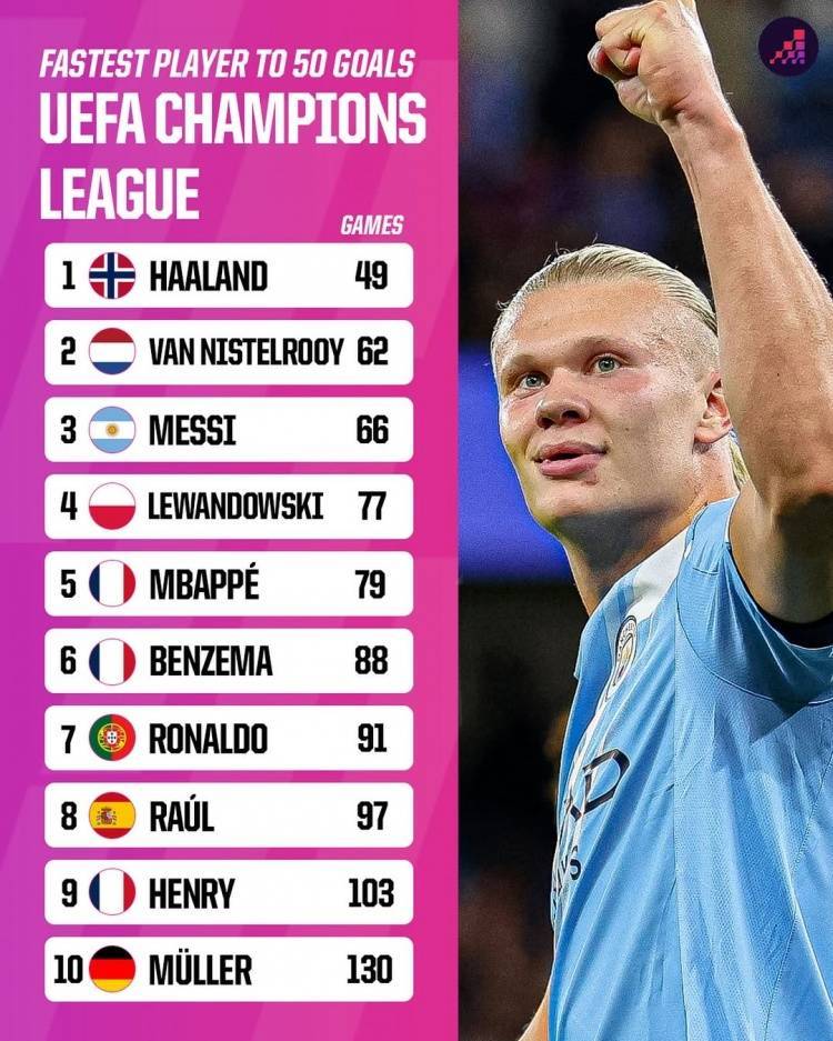 5场6球!英超锋霸太犀利,欧冠轰50球,超越梅西,创造新历史